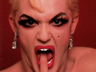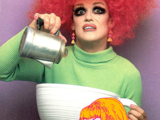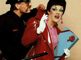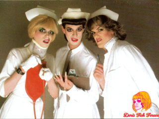 In the spring of 1982 we were performing a revamped version of “Sluts A Go Go” which was then retitled “Blonde Sin – The sin they left out of the Bible” at the Hotel Utah in San Francisco. The cast included Doris Fish, Timmy Spence, Tippi, Frieda Lay and Sister Boom Boom, a member of the The Sisters of the Perpetual Indulgence. The Sisters had modeled for a couple of greeting cards put out by a local company called West Graphics, headed up by Randy West. Randy canvassed the Sisters to find a model to go solo, but there were no takers as the Sisters were already fully engage with their many charitable endeavors, and Sister Boom Boom (Jack Fertig) planned to end their theatrical run in “Blonde Sin” and begin a political run to get elected to the San Francisco Board of Supervisors. So Boom Boom recommended Doris, Tippi and I as possible models due to our makeup expertise.